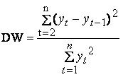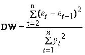 Статистика Дарбина-Уотсона (DW) вычисляется по формуле